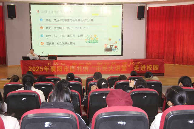为了帮助父母训练合理的认知,挖掘孩子的潜能,襄阳市图书馆开展“下基层、察民情、解民忧、暖民心”实践活动,更广泛倡导“科阅融汇发展”的全民阅读,11月18日下午,200余名家长齐聚襄阳市诸葛亮中学二楼报告厅,聆听由襄阳市图书馆“市民大讲堂”联合樊城区未成年人心理健康辅导中心、襄阳市诸葛亮中学特别邀请心理学硕士、襄阳市诸葛亮中学心理辅导室主任黄东梅,与大家分享“做高质量陪伴的父母”的全民阅读话题。