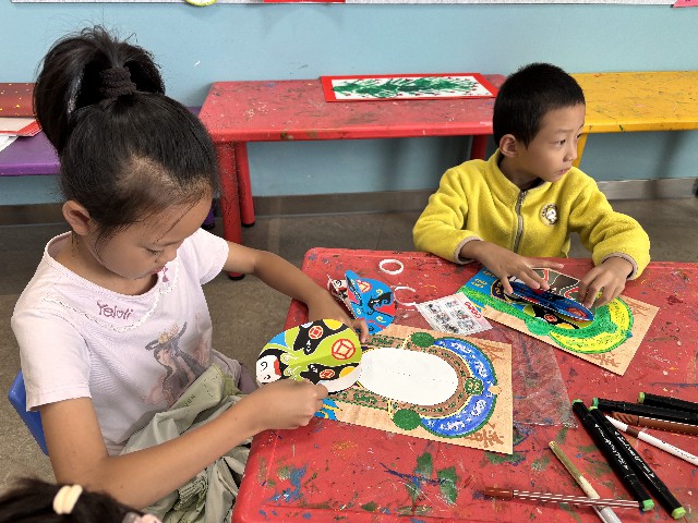 孩子们用铆钉将卡纸的中心固定,“咔哒”一声,一个可以自由翻动的立体脸谱便诞生了!孩子们迫不及待地翻动着自己的作品,看着一张张生动的脸谱在眼前交替出现,仿佛自己就是那位技艺高超的变脸大师。