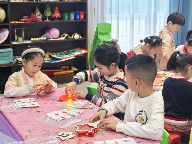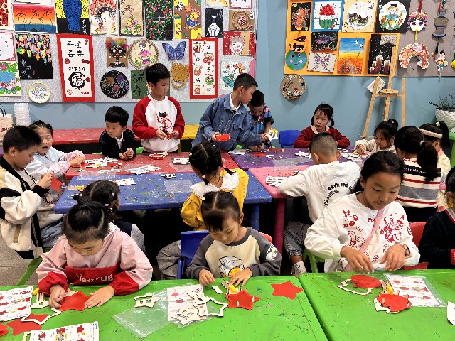 在手工制作环节,孩子们将红色的卡纸剪出火炬的形状,把金黄的五角星和小木棒仔细粘贴在一起,最后将小小的红色LED灯珠安装在火炬的“火焰”顶端。当孩子们将电池装入,轻轻按下开关,奇迹发生了!一盏盏原本普通的纸质火炬,瞬间“点燃”了鲜艳的红色光芒,仿佛真的火炬一般,照亮了孩子们兴奋而自豪的小脸。