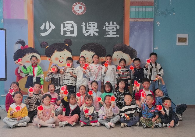 活动现场,老师向孩子们生动地讲述了国庆节的由来以及五星火炬所象征的革命精神、光明与希望。孩子们聚精会神地聆听,眼中闪烁着对祖国的热爱与崇敬。