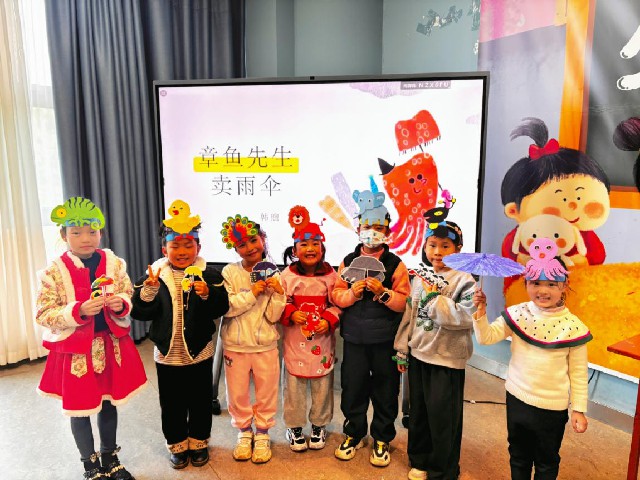 活动现场,老师声情并茂地讲述了《章鱼先生卖雨伞》的绘本故事。色彩鲜艳的图画、幽默风趣的语言,以及章鱼先生那神奇多变、能为不同小动物量身定做雨伞的“超能力”,深深吸引着每一个孩子。