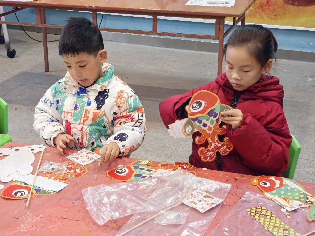 在制作环节,孩子们化身为“小工匠”,在老师的指导下开始搭建骨架、粘贴灯纸、安装灯饰。不一会儿,一盏盏色彩斑斓、形态可掬的鱼灯便在孩子们手中诞生。当灯光亮起,栩栩如生的鱼灯仿佛在空中游弋,孩子们脸上洋溢着满满的成就感。