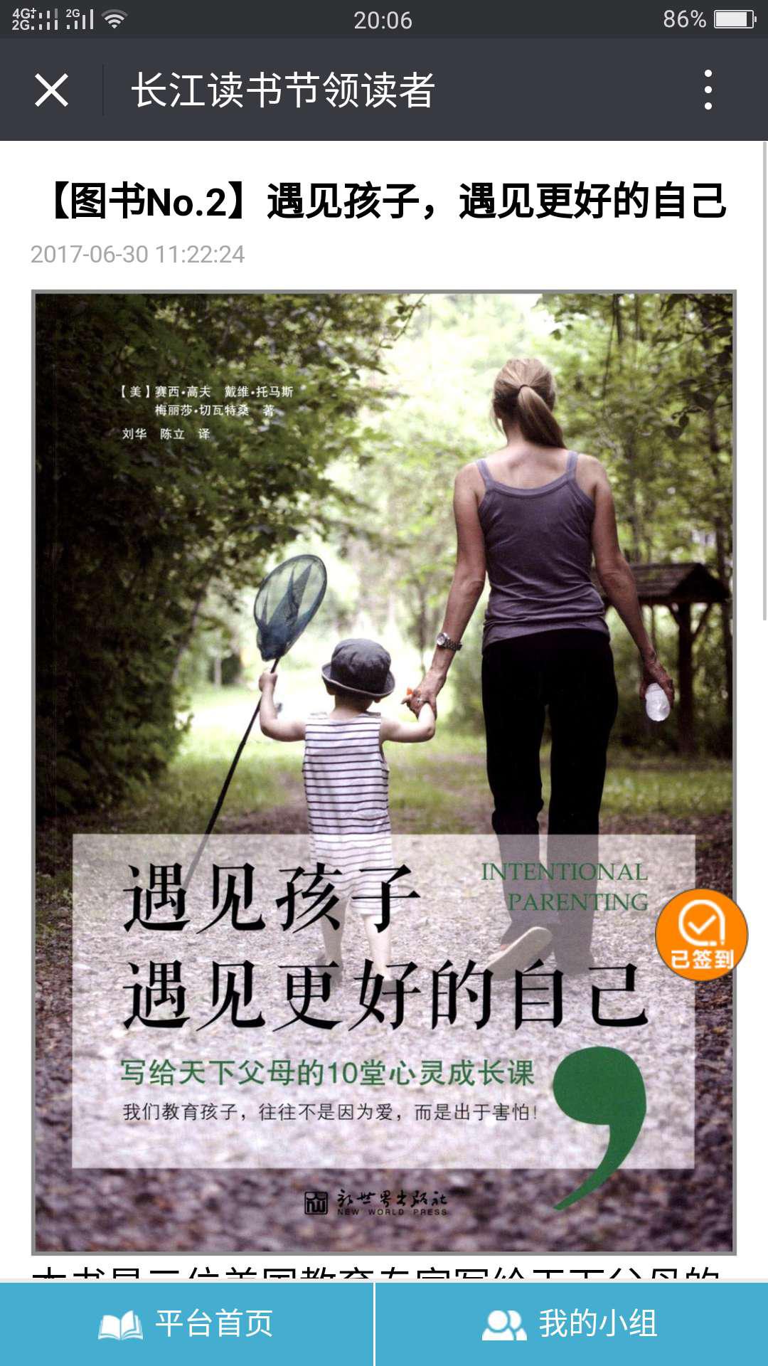 1、点击平台首页——本周共读——全部——点击[图书N0.2]遇见孩子遇见更好的自己——阅读本书(无需下载可直接阅读);