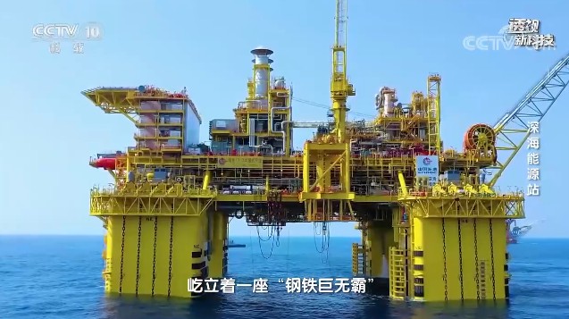 各位好,欢迎收看我们今天的《透视新科技》节目!我是主持人胜春。最近我们国家的海洋油气开采又实现了新的突破,深海一号实现了从水下300米到1500米的深度跨越,同时,还创造了三个世界首创,深海一号到底有多“牛”呢?通过短片来进入我们今天的节目。在我国广袤蔚蓝的深海中,屹立着一座“钢铁巨无霸”,它的总重量超过5万吨,耗费的钢材近八座埃菲尔铁塔,可以制造3.5万台轿车。它的总高度达120米,相当于40层楼高,面积相当于两个足球场。它的船体工程焊缝总长度高达60万米,可以环绕北京六环三圈,使用的电缆长度超800公里,可以环绕海南岛一周,这就是我国自主研发建造的,全球首座十万吨级深水半潜式生产储油平台。它会为我们普通人的生活带来什么呢?今天请来的两位嘉宾,一位是中国工程院院士周守为先生,另一位是中国海洋石油集团有限公司的高级工程师尤学刚。刚才看过短片之后,像“钢铁巨无霸”一样的东西到底是什么?刚才在短片当中我们看到的这个生产平台叫深海一号能源站,通俗一点地说它就是把陆地的油气处理厂经过优化集成,搬迁到了海上,安装在了我们海上,成为一个浮动的油气生产处理厂。深海一号能源站,它是由3.3万吨的下船体和2万吨上部处理模块组成,那么这3.3万吨的下船体,它的排水量近11万吨,这就是相当于我们三艘中型航母的排水量,并且这个平台它可以容纳120人在这个平台上进行生产和生活。这个平台集世界三项首创和13项国内首创于一身,大家刚才在短片中看到是真正意义上的一个钢铁巨人。