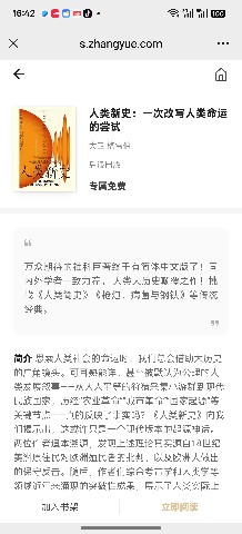 襄阳市图书馆“齐悦读”读书会第711期 [线上共读] 《人类新史:一次改写人类命运的尝试》,每周“齐悦读”将推出一本图书电子版书籍进行共读,请先关注“湖北省图书馆”微信公众号,进入后点击——资源——数字资源——推荐资源——掌阅精选(第一次进入时点“我的”用手机号发验证码注册登录)——文津图书奖——《人类新史:一次改写人类命运的尝试》——阅读本书(无需下载可直接阅读),让我们一起携手同行共同悦读成长!