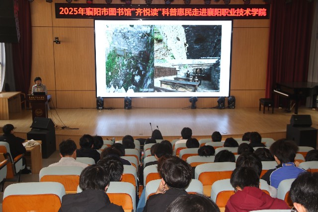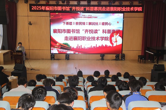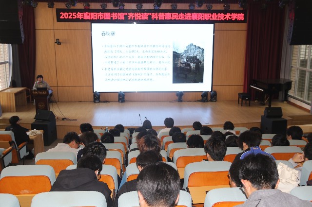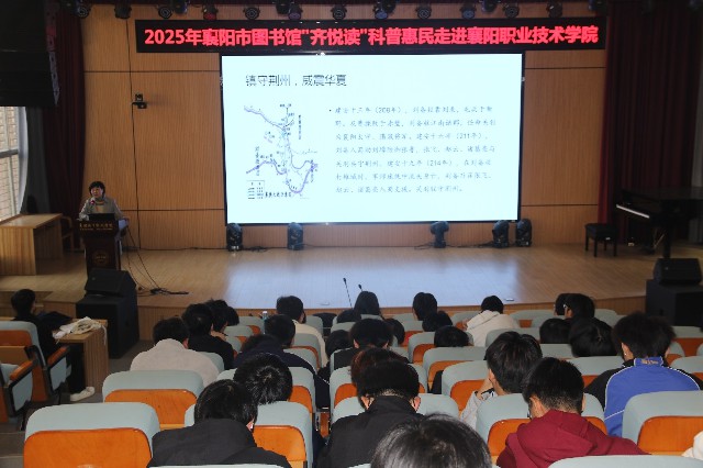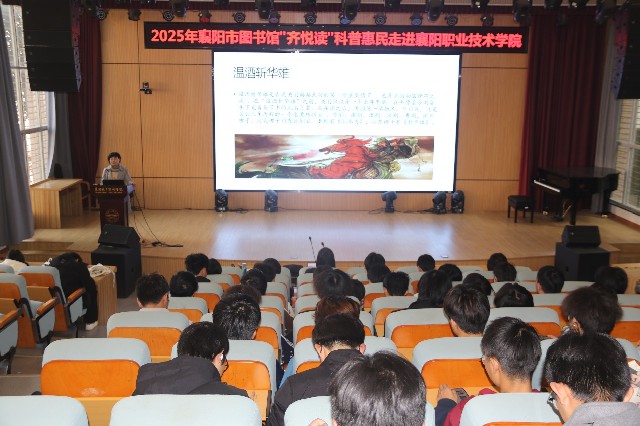 为了深度挖掘地域文化精髓,赋能文旅融合发展,襄阳市图书馆开展“下基层、察民情、解民忧、暖民心”实践活动,更广泛倡导“科阅融汇发展”的全民阅读,着力培根铸魂,探寻襄阳悠久的历史文化,11月13日下午,300余名师生齐聚襄阳职业技术学院博学楼一楼报告厅,聆听由襄阳市图书馆“齐悦读”读书会联合襄阳职业技术学院图书馆特别邀请襄阳职业技术学院教授滕静,为大家分享“讲好襄阳故事——《关羽与春秋寨》”的全民阅读话题。