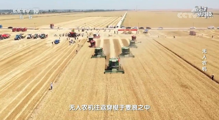 各位好,欢迎收看我们今天的《透视新科技》节目!我是主持人胜春。锄禾日当午,汗滴禾下土,这是对中国传统农业耕种最生动的一种描述,而随着科技的发展,这种场面将会被机械化所代替,那就是无人农用机,它到底会为中国的农业带来什么呢?我们通过短片进入今天的节目。夏收是全年粮食收获的第一季,夏粮占全年粮食产量的四分之一以上,关乎着全国14亿人口的温饱和粮食安全。2022年6月正值小麦收割时节,想确保各地丰收的小麦颗粒归仓必须抢时抢收。在全国各地的麦田里无人农机往返穿梭于麦浪之中,收割、脱粒、粉碎匀抛、卸粮,一气呵成。传统农机与人工智能技术相结合,会给农业生产带来哪些变化?未来它又将会如何影响我们的生活?今天请来的两位嘉宾,一位是中科院沈阳应用生态研究所的研究员张旭东,另外一位是中国科学院微电子所副研究员韩威。无人农用机来代替人类劳作,那它到底解决了哪些问题?