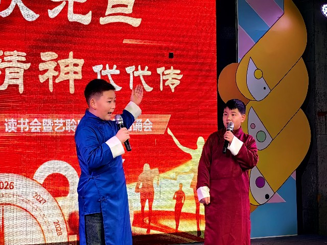 “踏着如意舞步,新的一年即将如约而至!”“听着动人旋律,2026年温暖而来!”“中华五千年的悠久历史,孕育了底蕴深厚的民族文化。”“华夏五千年的经典诗文,是经久不衰的瑰宝。”“用普通话,弘扬民族文化,传承华夏文明。”“用普通话,诵读经典美文,营造书香校园。” 当4位小主持人迈着稳健的步伐走上舞台,用标准的普通话,表达着对元旦佳节的欣喜,表达着对爸爸妈妈、爷爷奶奶辛勤的抚育,表达着对艺聆口才老师们的敬仰,表达着对同学们相互陪伴成长的进步……运用朗诵、主持、相声等语言艺术,歌颂党的二十大和二十届历次全会精神,歌颂建党104年来中国共产党团结带领全国各族人民为民族独立、人民解放和实现中华民族伟大复兴各个时期的红色诗歌、革命经典为主题,唱响跟党走、忆党史、颂党恩、强党性的时代主旋律,迎接2026年新年的到来。