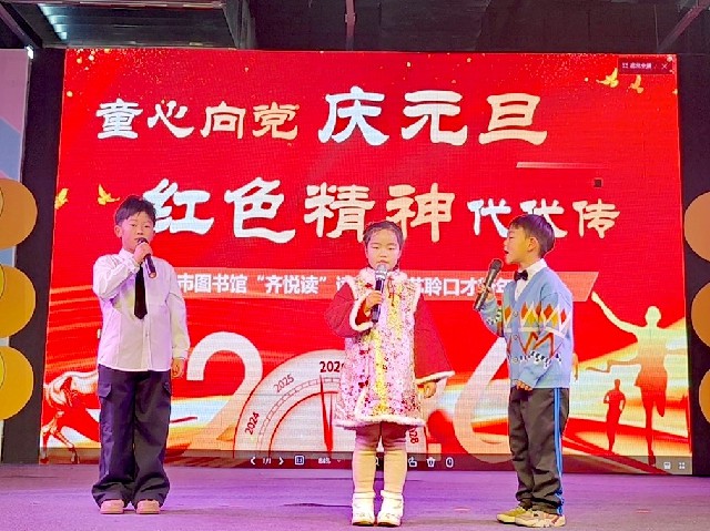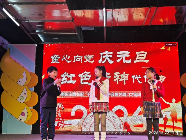 为了庆祝“元旦”佳节,深入学习贯彻党的二十大和二十届历次全会精神,全面贯彻党的教育方针,落实立德树人根本任务,着力培根铸魂,厚植爱国情怀,襄阳市图书馆开展“下基层、察民情、解民忧、暖民心”实践活动,更广泛倡导“科阅融汇发展”的全民阅读,普及“家庭阅读、亲子共读”理念,关爱青少年,给青少年一个自由展示的“梦想”舞台,12月27日-28日上午,1500余名父母和儿童齐聚襄阳东津民发世纪广场一楼,聆听由襄阳市图书馆“齐悦读”读书会、襄阳艺聆口才、襄阳民发世纪广场联合举办“童心向党庆元旦 红色精神代代传”诗歌朗诵会活动。