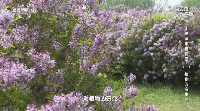 随着这种技术的进步,丁香的研究也开始逐步迈入了这个分子阶段,首先我们国家植物园就把第一个华北紫丁香的这个全基因组序列给它破译了。然后这样的话,就是为未来我们更深入地研究丁香,比如说它的香味产生的机制,包括它的一些木质素的含量。还有一些重要的药用价值,它的成分产生的机制就打下了一个很好的一个基础,下一步就要进入深入地挖掘它的应用价值的这个阶段了。国家植物园建有牡丹、丁香、睡莲、海棠、玉簪、野生蕨类六个国家花卉种质资源库,通过科研人员对野外资源的收集、保存、培育。以及针对每种植物的物种进化、生命起源、物种种间关系、药材、粮食和水果品种的改良等开展深入研究,缓解了野生植物由于过度采集、自然灾害等因素造成的生存危机。凭借雄厚的科研实力,国家植物园迁地收集植物1.5万多种,包括品种其中珍稀濒危植物近千种,对牡丹、丁香、海棠等,从资源收集保育到适应性和功能研究,从新品种选育到商业化繁殖,从行业标准制定到推广前景应用都取得了丰硕的成果,除了芬芳的香味,植物还有哪些实用价值。