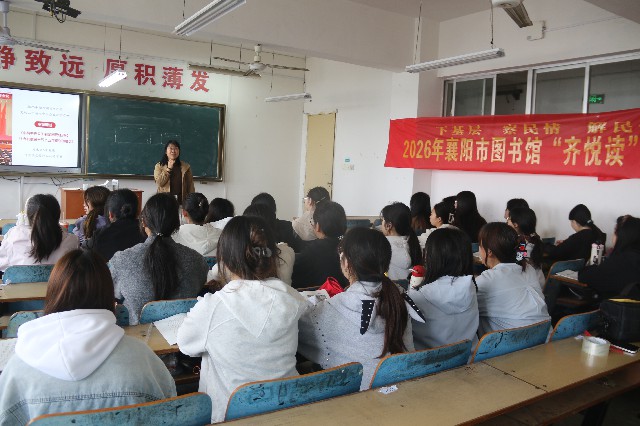 为了全面贯彻落实“十五五”规划的良好开局,以系统思维统筹“稳”与“进”、“守正”与“出新”,确保中国式现代化航船行稳致远,襄阳市图书馆开展“下基层、察民情、解民忧、暖民心”实践活动,更广泛倡导“科阅融会贯通”的全民阅读,3月31日上午,众位师生齐聚襄阳职业技术学院明志楼304室,聆听由襄阳市图书馆“齐悦读”读书会联合襄阳职业技术学院马克思主义学院特别邀请襄阳职业技术学院马克思主义学院副教授李奕,为大家分享“夯实基础 全面发力”的全民阅读话题。