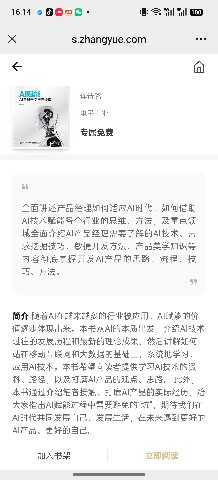 襄阳市图书馆“齐悦读”读书会第757期 [线上共读] 《AI赋能:AI重新定义产品经理》,每周“齐悦读”将推出一本图书电子版书籍进行共读,请先关注“湖北省图书馆”微信公众号,进入后点击——资源——数字资源——推荐资源——掌阅精选(第一次进入时点“我的”用手机号发验证码注册登录)——书名搜索《AI赋能:AI重新定义产品经理》——阅读本书(无需下载可直接阅读),让我们一起携手同行共同悦读成长!