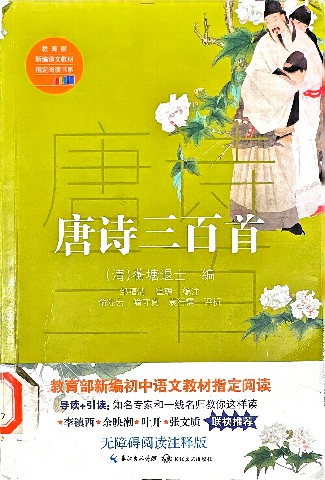 内容简介:本书是我国古典诗词的重要著作,由清代学人蘅塘退士编选。全书遴选了李白、杜甫、白居易、李商隐等七十多位诗人的代表性诗作三百余首,按照五言古诗、七言古诗、五言律诗、七言律诗等体裁分类编排。为了阅读方便,本书还采用了唐诗鉴赏名家喻守真、俞陛云和当代学者袁行霈的评析,既适合初学者诵读,也适合有一定基础的读者进一步提高其鉴赏水平。