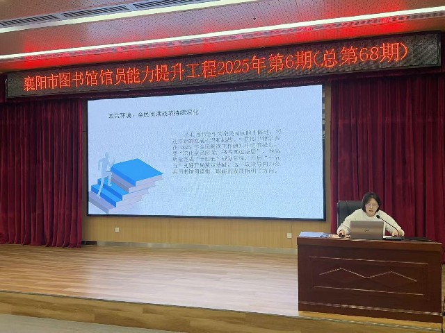 本次分享会是襄阳市图书馆馆员能力提升工程2025年第6期培训活动,也是自2020年馆员能力提升工程实施以来的总第68期培训活动。