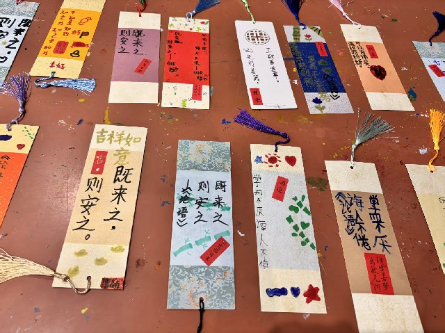 活动伊始,在老师的引导下,小朋友们身着各式汉服,排着整齐的队伍,面向庄严肃穆的孔子画像,正衣冠、行拜师礼。一双双清澈的眼眸中充满了对先贤的崇敬,稚嫩的动作透出对传统文化的虔诚。行礼毕,现场进入了充满创意与乐趣的“《论语》书签制作”环节。图书馆早已为孩子们准备了空白的书签、彩笔、流苏以及精心挑选的《论语》经典名句,如“学而时习之,不亦说乎?”“己所不欲,勿施于人”“三人行,必有我师焉”等。孩子们兴致勃勃地挑选自己喜爱的名句,挥毫泼墨。不一会儿,一枚枚承载着《论语》智慧的创意书签便诞生了。孩子们举着自己亲手制作的书签,纷纷表示要将书签带回家,时时诵读,铭记圣贤教诲。