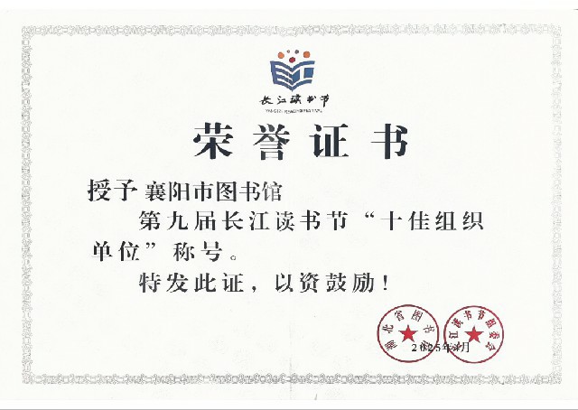 ·襄阳市图书馆荣获第九届长江读书节“十佳组织”称号