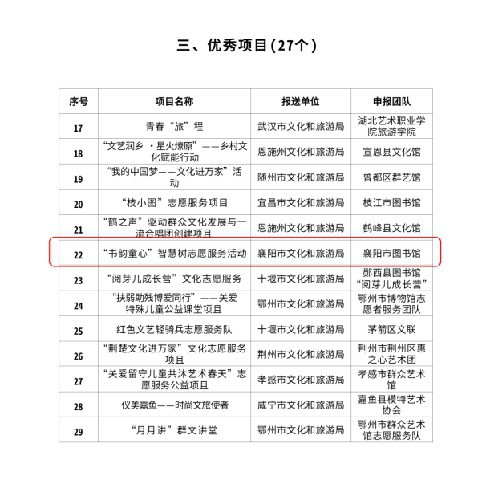 ·襄阳市图书馆“书韵童心”项目荣获“文艺点亮生活”2025年湖北省文旅志愿帮扶优秀项目