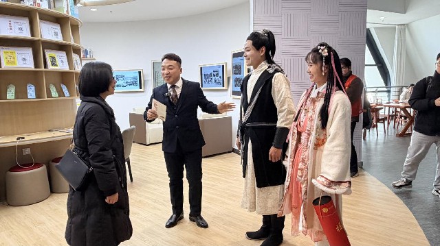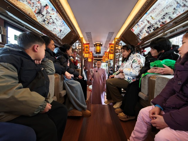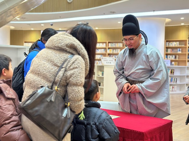 本次活动最吸睛的亮点,是襄阳市图书馆联合襄阳公交集团开通的3条“侠义公交”专线。专线以免费接驳形式打破文化服务的空间限制,将文化惠民服务延伸至城市交通网络。更具特色的是,主题公交化身“移动武侠剧场”,专业说书人身着传统服饰,随车讲述宋元襄阳保卫战的壮阔历程与古城侠义传奇。激昂顿挫的讲述让市民在日常出行中沉浸式感受武侠文化与城市历史的深度交融,使公共交通成为传播本土文化的流动载体。