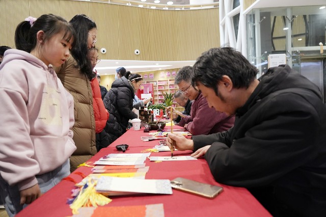 活动以“全员参与、深度互动”为理念,构建起多层次文化体验体系“侠客行・诗文会”打卡区设置多元互动场景:少年儿童在“诗心启航・拼贴成诗”环节用彩色纸片创作童真诗作;文学爱好者在“诗画襄阳・诗词接龙”环节与“孟浩然”角色扮演演员即兴对答,吟诵襄阳主题诗词;书法爱好者在“妙笔祈愿・墨韵书签”环节领取书法家题写的新年寄语,将文化祝福融入笔墨。