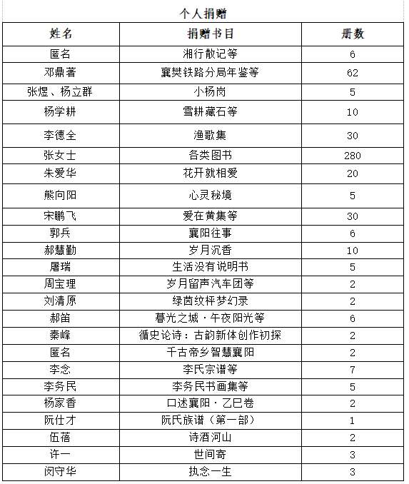 襄韵书香 筑梦向阳 2025年10-12月襄阳市图书馆受赠图书公示