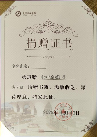 1.襄阳市图书馆对捐赠者颁发捐赠荣誉证书,作为永久纪念。
