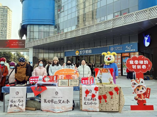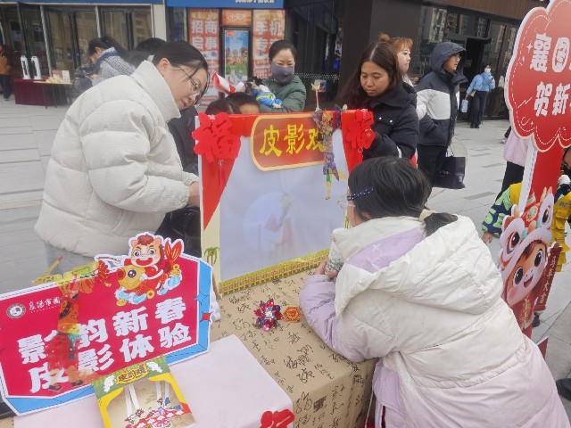 活动现场,传统民俗、文艺表演与暖心服务交相辉映,氛围感十足。襄阳市图书馆文化市集展位聚焦“沉浸式文化体验”,设置了“福刻马年·雕版手作”“新春主题图书展”“皮影戏体验”三大核心互动区域,兼顾趣味性与知识性,吸引了不同年龄段市民参与。
