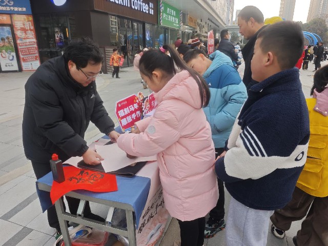 农历新春将至,年味渐浓暖意盛。近期,由市委宣传部(文明办)、市文联、市图书馆联合主办的“翰墨迎新春 文明送福来”文明实践主题活动在樊城区温情启幕,丰富群众节日精神文化生活,传递城市温情,推动文明新风浸润襄阳大地。襄阳市图书馆特别开展“打开图书馆·襄图雅韵贺新春”新春文化市集活动,以阅读推广、非遗体验、文化互动为核心,将雕版印刷、皮影戏等传统技艺与图书馆文化服务相结合,让市民在街头巷尾感受书香年味,为新春佳节增添了浓郁的文化氛围。