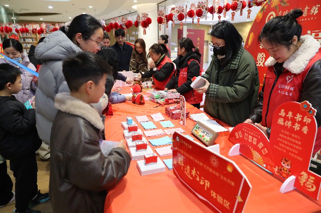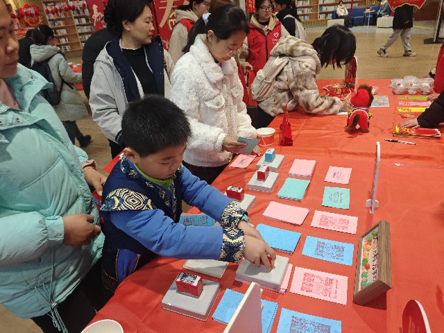“非遗书印·书香留福”环节独具匠心、亮点凸显,将马年新春元素、非遗技艺与图书馆馆藏文化深度绑定,打造极具仪式感的“新春集福”体验。活动特设专属集福印章点位,集中展示马年主题新春印章、馆藏古籍吉祥印章等特色资源,每一枚印章都精心镌刻,既有“马上加薪”的新春期许,也有古籍文字的书香韵味。市民读者免费领取集章卡,亲手盖下一枚枚寓意吉祥的印章,指尖触感间,是非遗技艺的传承,是馆藏书香的浸润,以简单而有意义的方式,定格元宵福气、解锁新春好运,让传统文化在仪式感中深入人心。