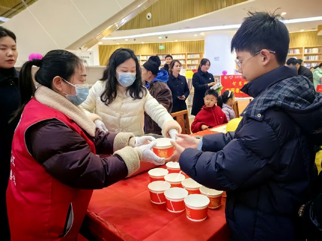 “汤圆手作·书香团圆”手工制作区则尽显温情,成为亲子互动、家庭相聚的温馨阵地,传递着元宵最本真的团圆之意。现场专门邀请专业人员现场指导,市民们挽起衣袖、分工协作,揉面团、包馅料,一个个形态各异的汤圆在手中成型,欢声笑语间,尽显家庭团圆的幸福与美好。待汤圆煮熟后,工作人员逐一分发给市民,一碗碗热气腾腾的汤圆,承载着元宵团圆的美好寓意,一口下去,甜润暖心,让现场市民在味蕾的满足中,真切体悟元宵佳节的团圆之意,也感受到图书馆传递的人文关怀与温暖,让书香与暖意浸润人心。