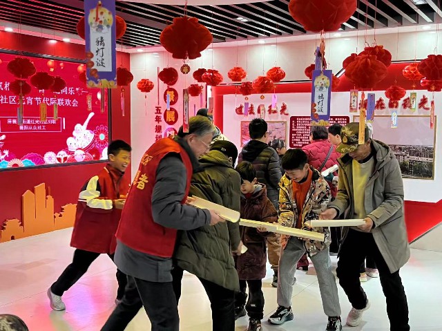 本次活动在全市多家城区分馆同步开展,各馆立足自身特色与读者群体,打造各具亮点的节庆文化体验。东风分馆携手社区聚焦“一老一小”,开展了“情暖襄阳”主题活动。专业老师以盒子戏为孩子们生动讲述了“年”的故事,手工灯笼、猜灯谜、包元宵、趣味套圈等环节轮番上阵,老少居民欢聚一堂,共度温馨佳节。