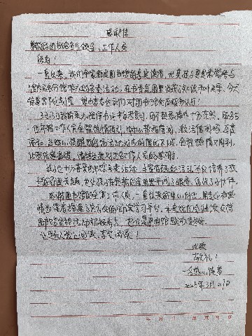 一纸感谢信,承载着读者的信任与期盼。下一步,襄阳市图书馆(少年儿童图书馆)将以此为动力,坚守服务初心、厚植为民情怀,持续优化服务举措、丰富服务内容、创新服务模式,深耕全民阅读推广,完善公共文化服务体系,让书香浸润千家万户,为建设书香襄阳、提升城市文化软实力贡献更大力量。