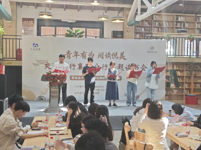 为深入推进全民阅读,深化馆企合作,以书香赋能青年成长,4月18日下午,襄阳市图书馆(少年儿童图书馆)联合交通银行襄阳分行举办“青年有为 阅读悦美”青年读书会活动。50余名银行青年员工齐聚六〇三城市书房,同品经典、共话担当,以阅读凝聚奋进力量。