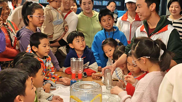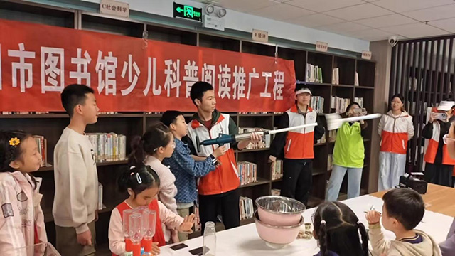4月25日上午,襄阳市图书馆联合营盘社区、湖北文理学院物电学院团队,在营盘书房开展少儿科普实验亲子活动。其以趣味科普实验为载体,结合全民阅读活动周契机,带领亲子家庭沉浸式玩转科学,在动手实践中感受书香与科学交融的独特魅力,丰富少儿读者的阅读与实践体验,激发科学探索兴趣。