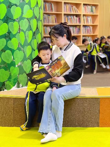 随后的绘本分享环节,亲子搭档依次登场,生动讲解了《独一无二的你》《做勇敢的自己》《毕业了还是好朋友》等经典绘本。孩子们用稚嫩的声音讲述故事里的成长与友谊,家长们则适时补充、引导互动,在分享中传递自信、勇敢与珍惜友情的美好品质,现场温馨满满。分享结束后,进入自由阅读时间,孩子们围坐在一起,挑选喜爱的绘本共同翻阅,轻声交流阅读感悟,在书页的翻动声中享受难得的阅读时光。